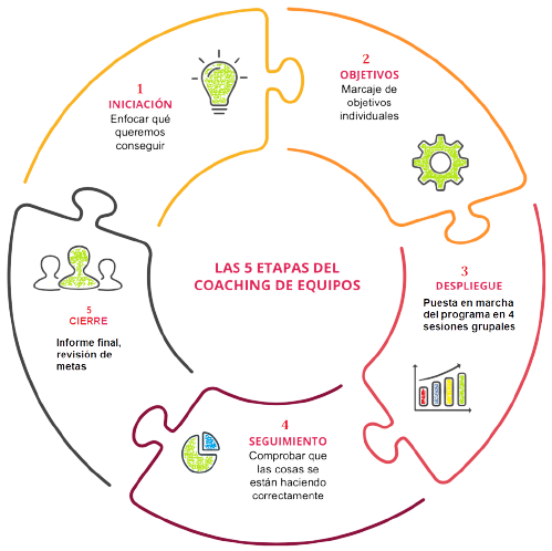 ¿ Cuales son las etapas del coaching de equipos ?